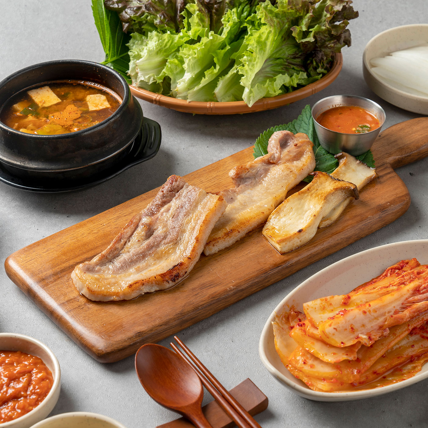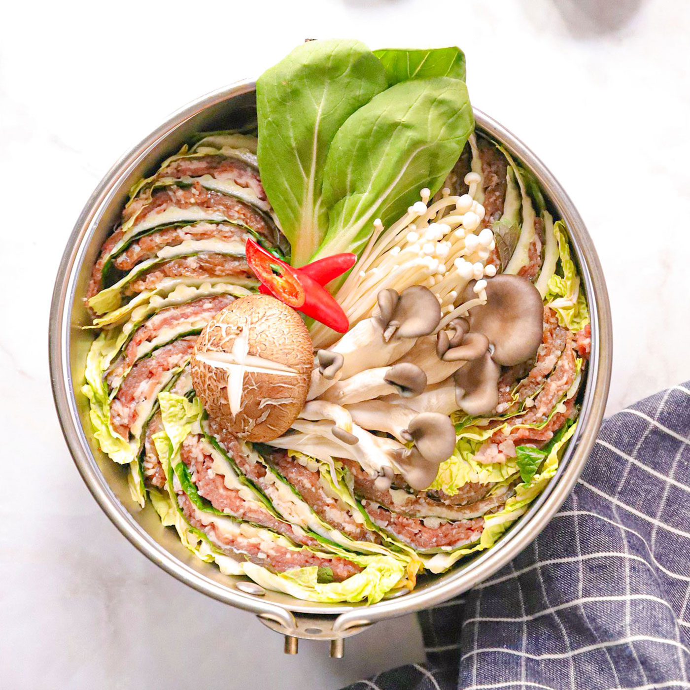 겹겹이 쌓인 배추와 고기의 담백한 한 상