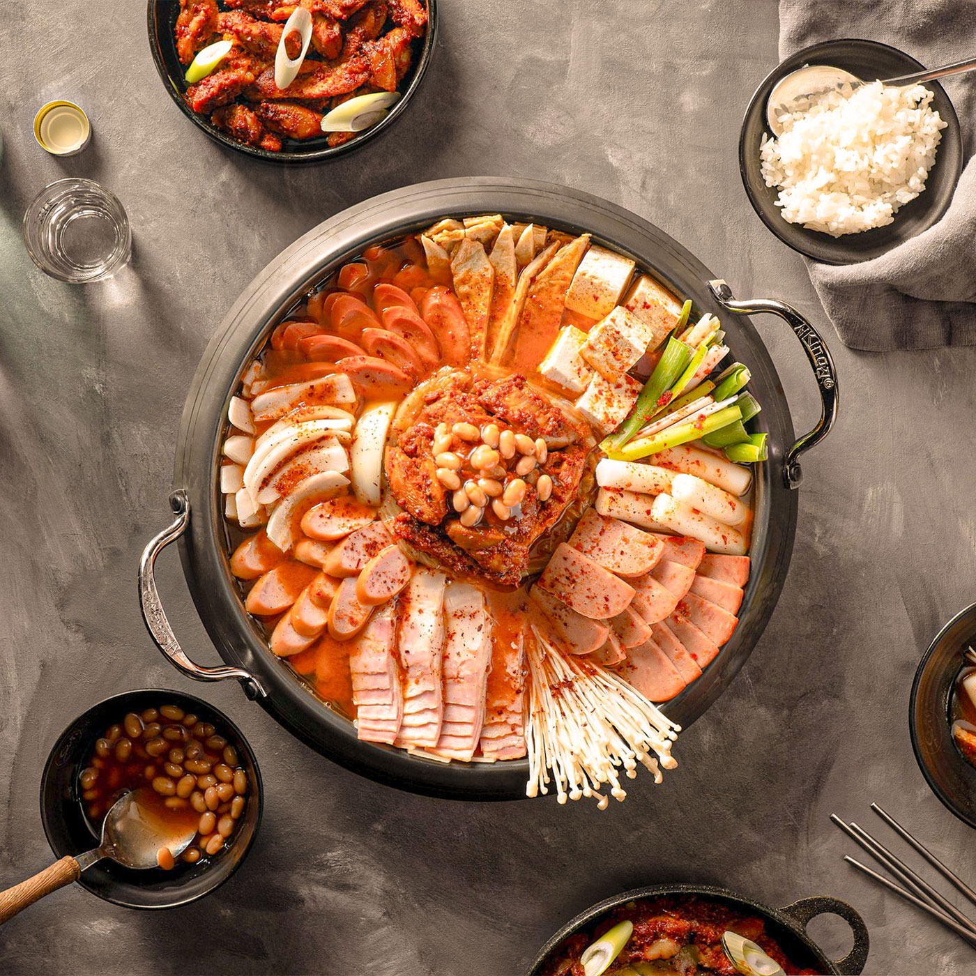 햄, 소시지, 채소 등, 푸짐한 사리들이 듬뿍~