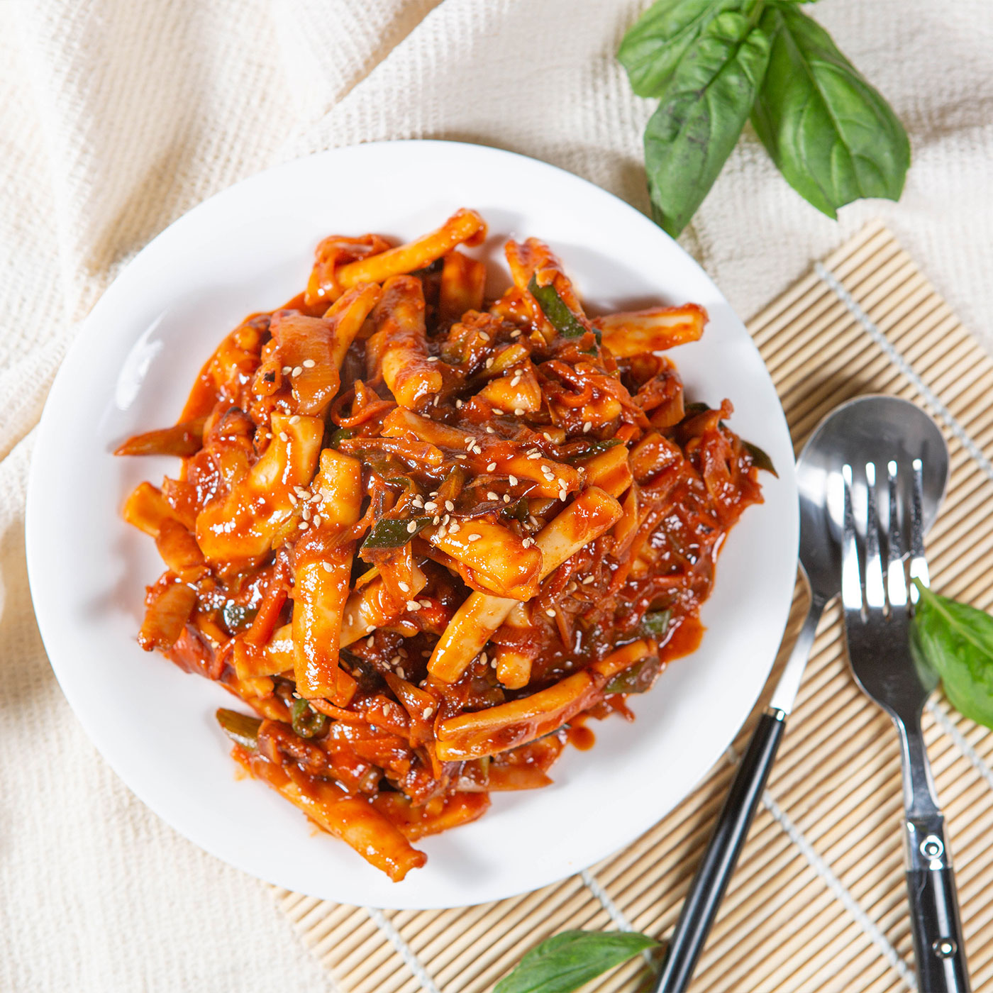 서로 다른 식감을 하나로 합쳐주는 매콤한 양념