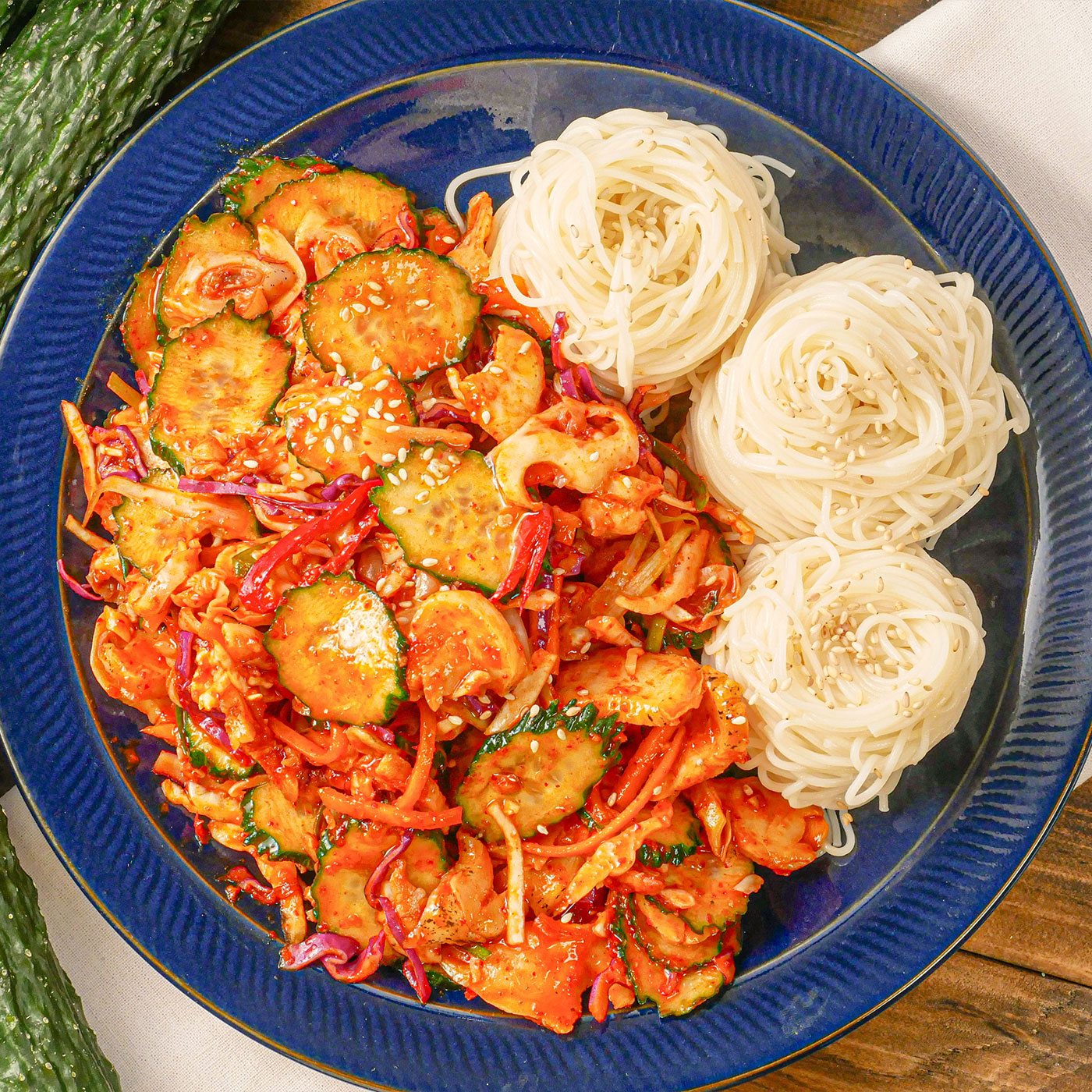 아삭한 오이, 꼬들한 소라, 새콤한 양념장의 소면 무침