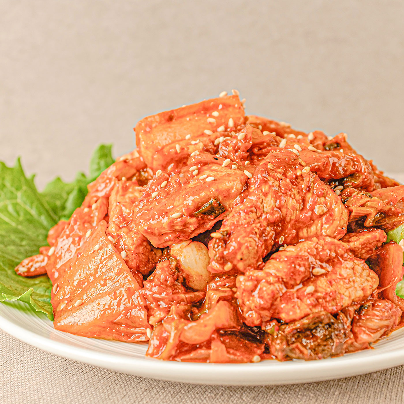 부드러운 돼지고기에 아삭한 겉절이의 조합