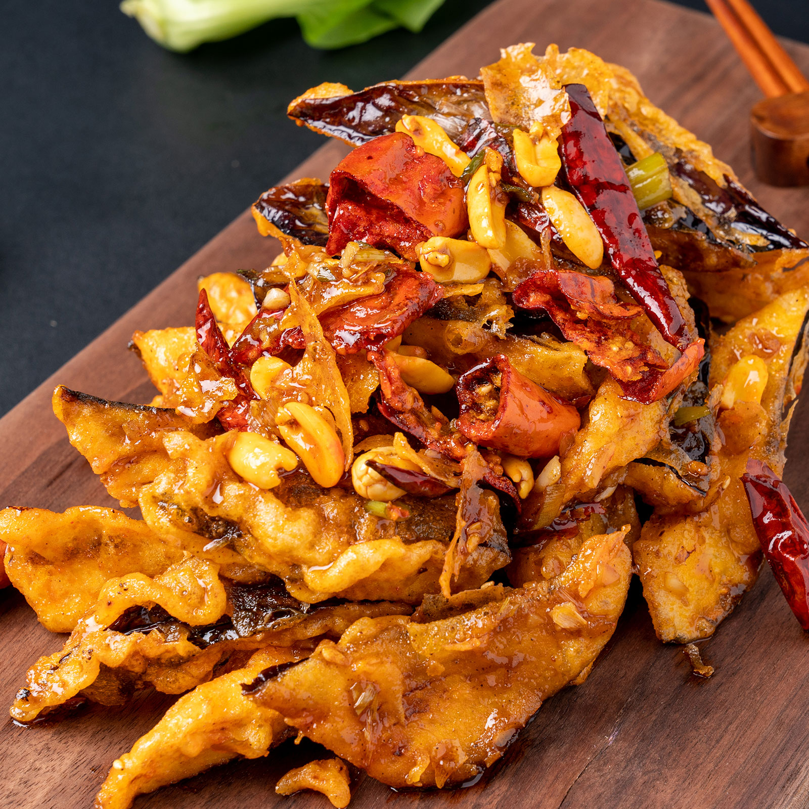 매콤한 고추가 가득 들어간 중식요리