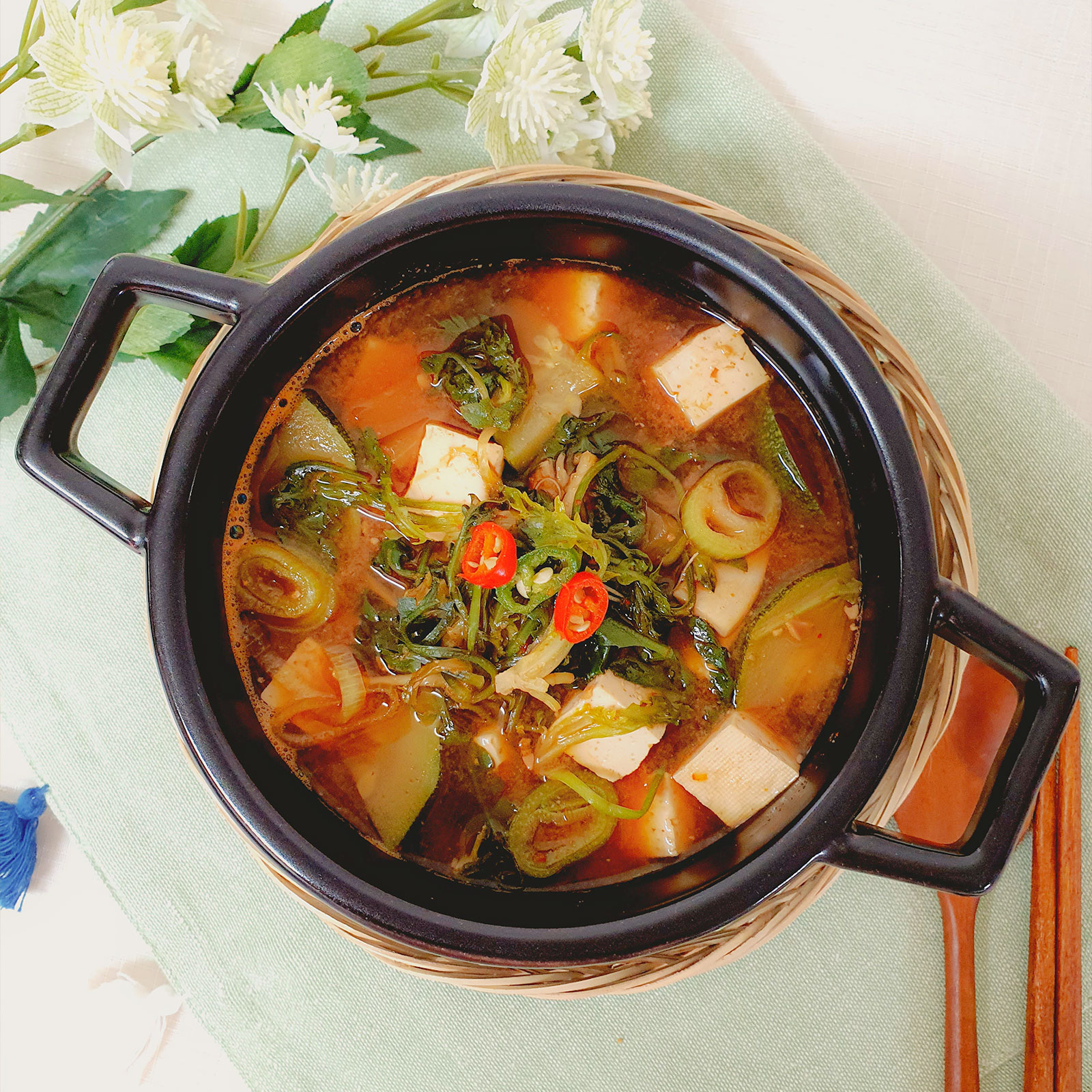 달달한 애호박을 잔득 넣은 구수한 된장찌개