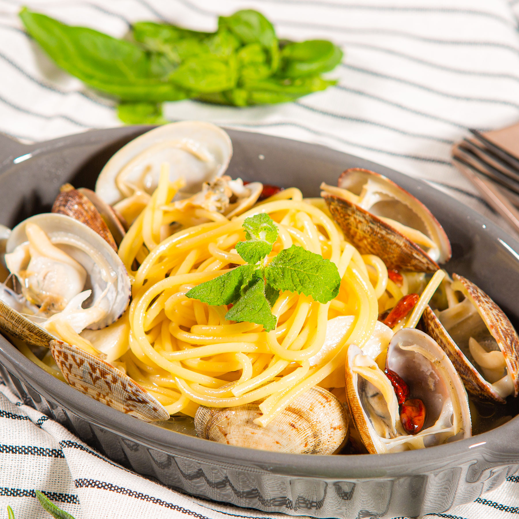 쫄깃한 바지락을 가득 넣은 시원한 파스타