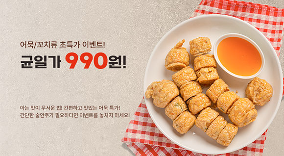 맛있고 간편한 어묵과 핫바들이 990원 초특가로! 마음대로 골라보세요~